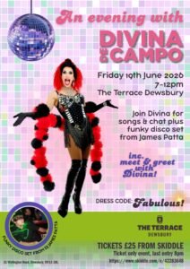 The darling of Brighouse, this will be something of a homecoming bringing some glamour and sass to Dewsbury! An Evening with Divina will be a fabulous night of song, chat, and humour with funky disco from DJ James Patta to get you dancing.