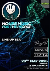 🏠🎵 This event will run from 6PM through to 2AM and promises to get everyone moving from start to finish. Come and join the VOH lads for an electric atmosphere with house music from the early 90s to present day. House music for the people 🎵